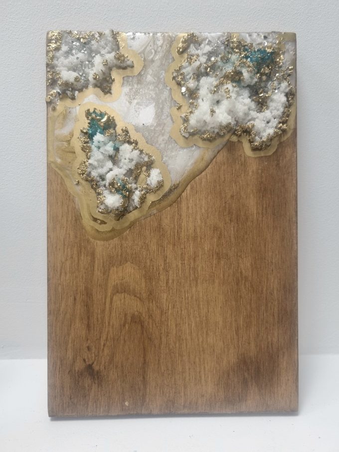 Une planche à apéro de la collection Agate (20×30 cm), réalisée en résine sur bois.