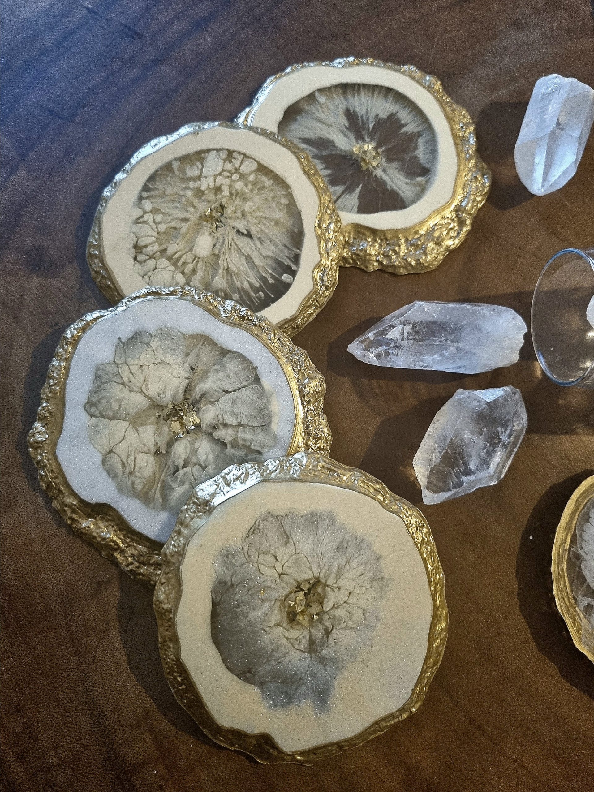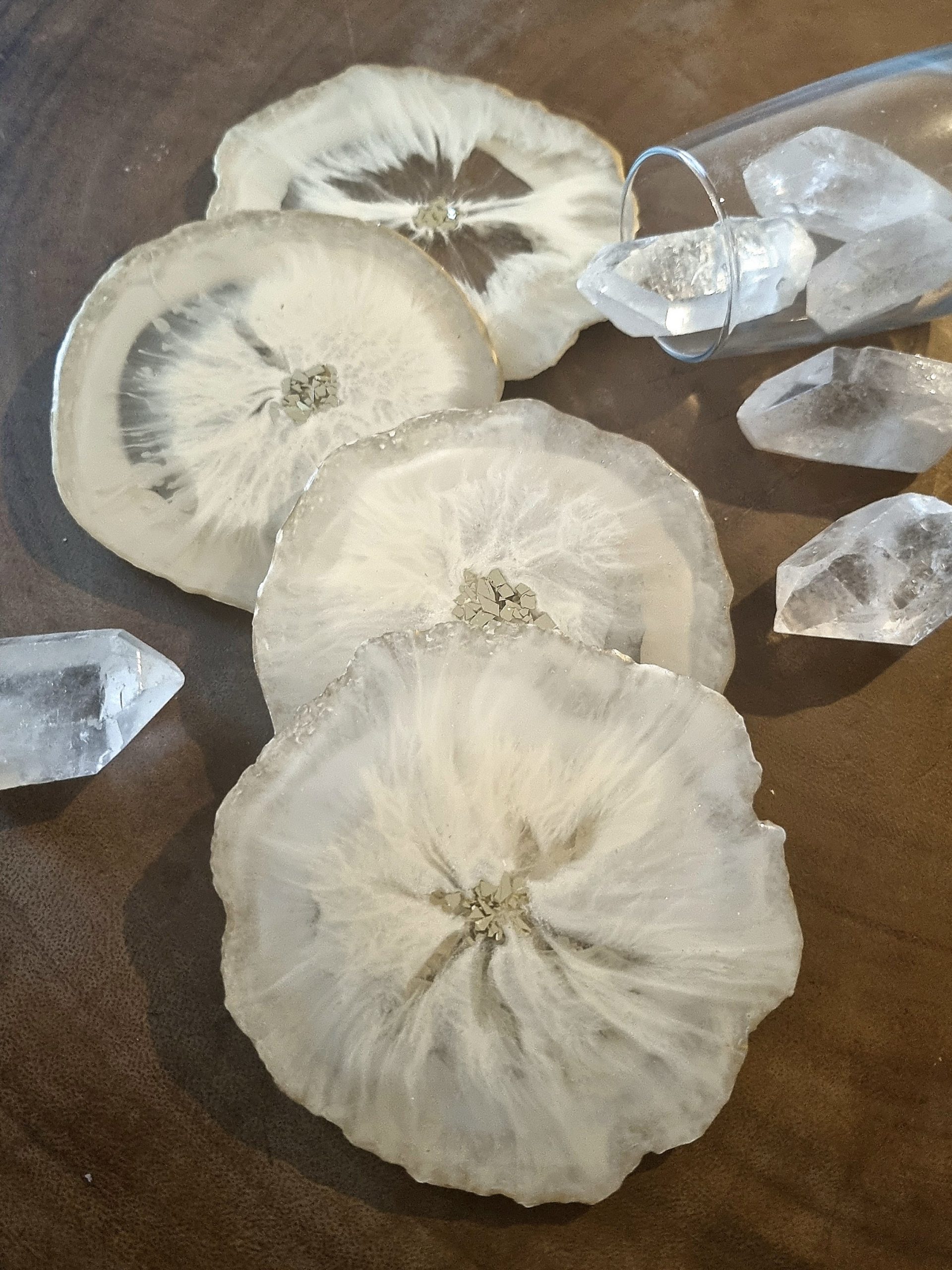 Un ensemble de quatre dessous de verre inspiré par les pierres Géode et les minéraux avec une jolie épaisseur.