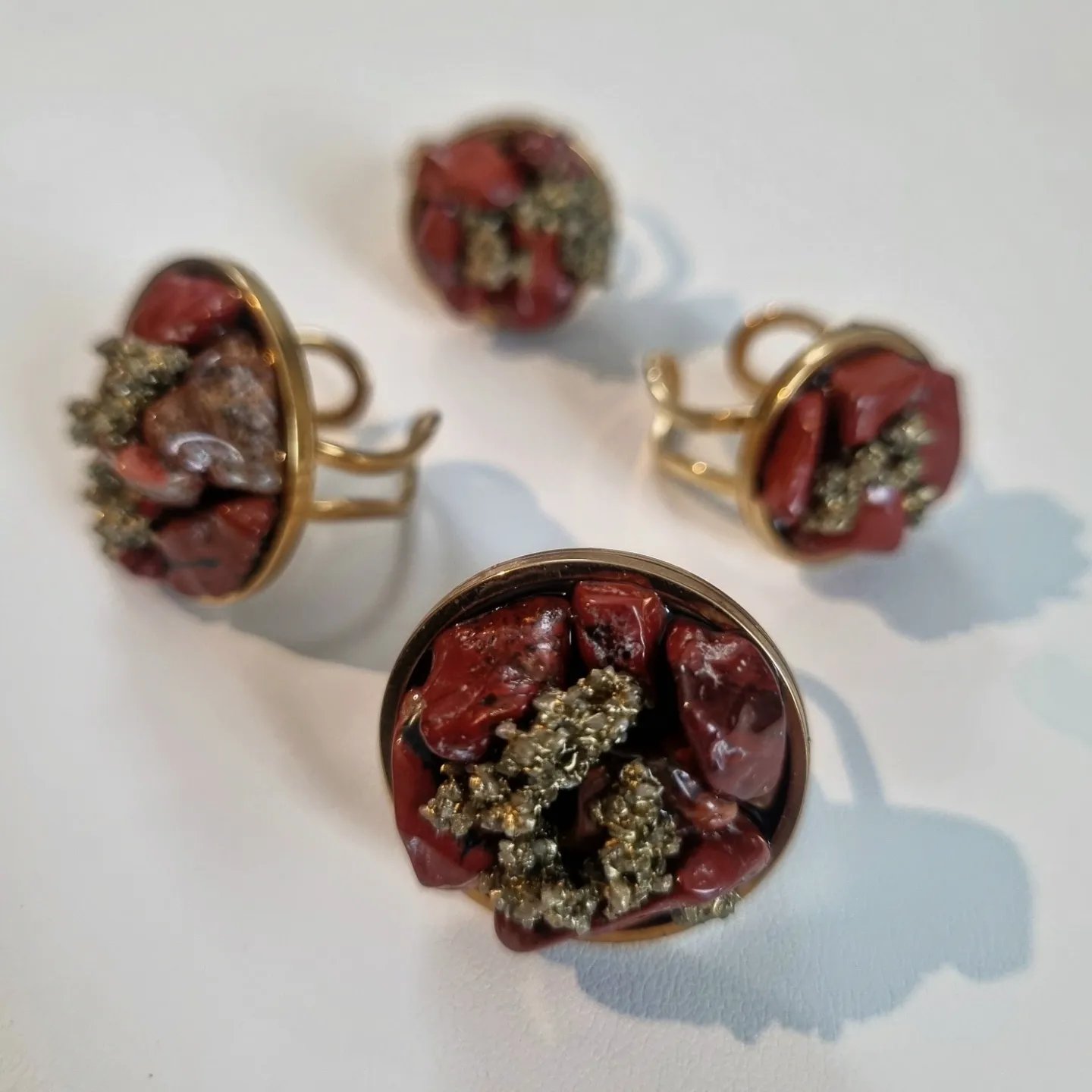 Bague Taille réglable, diamètre : 2,5cm, matière : acier inoxydable, pierres : minéraux et jaspe rouge