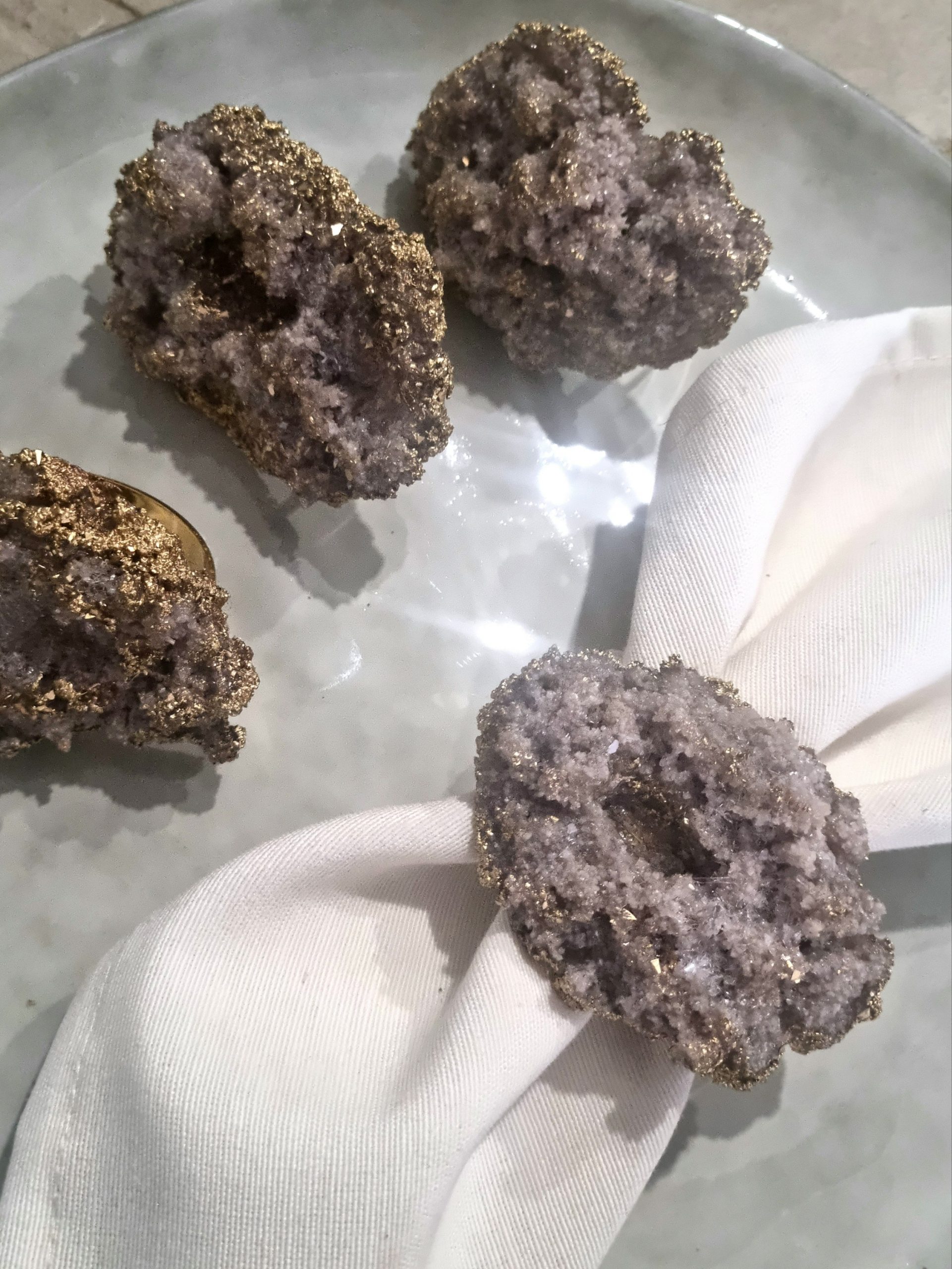 “Quand la nature inspire l’art, Cherry Art vous propose ces nouveaux ronds de serviettes inspirés par les minéraux afin de sublimer vos intérieurs. Chacun est une œuvre d’art unique, créée à la main, pour apporter une touche d’élégance à vos moments en famille pendant la période des fêtes.”