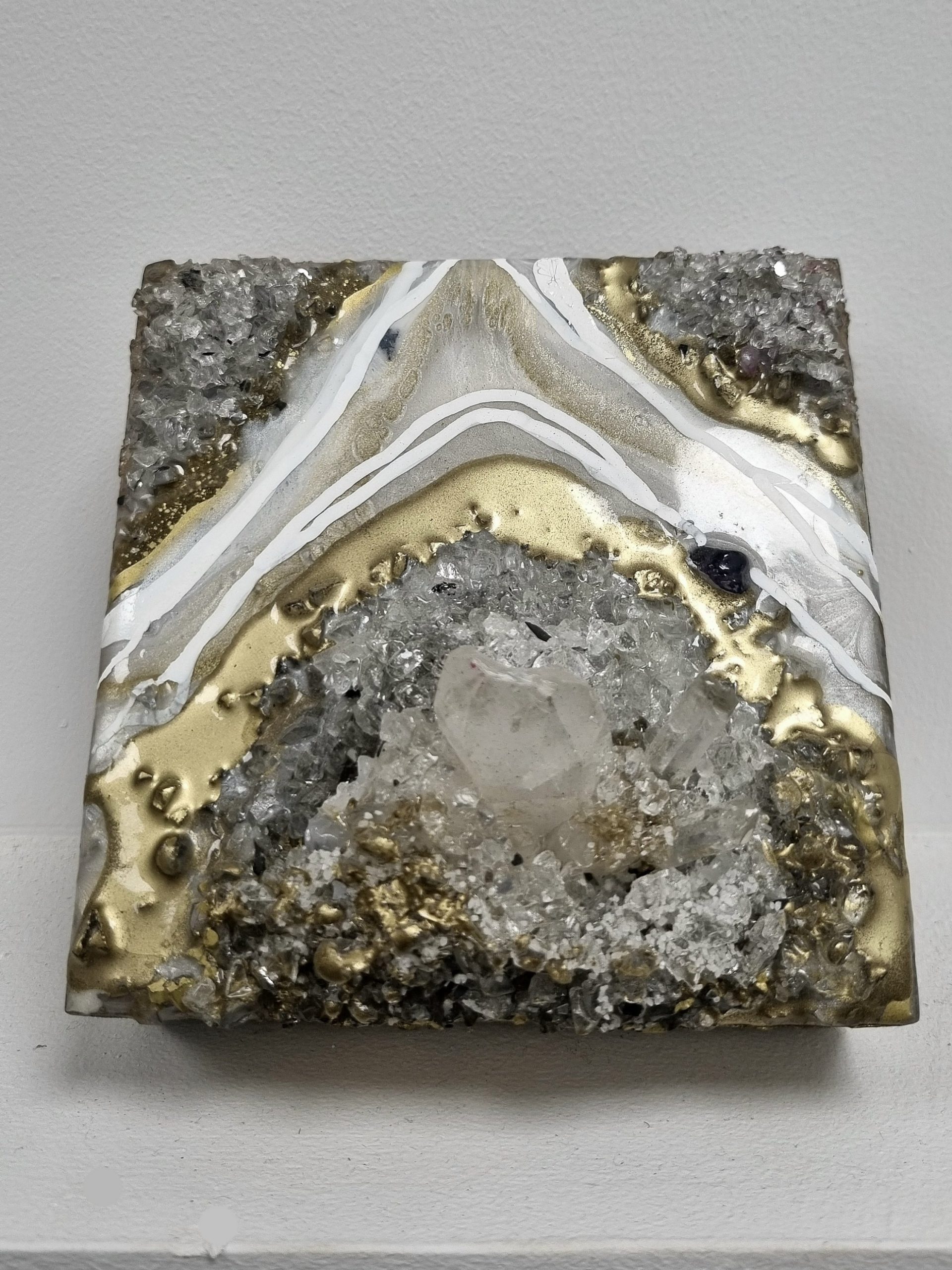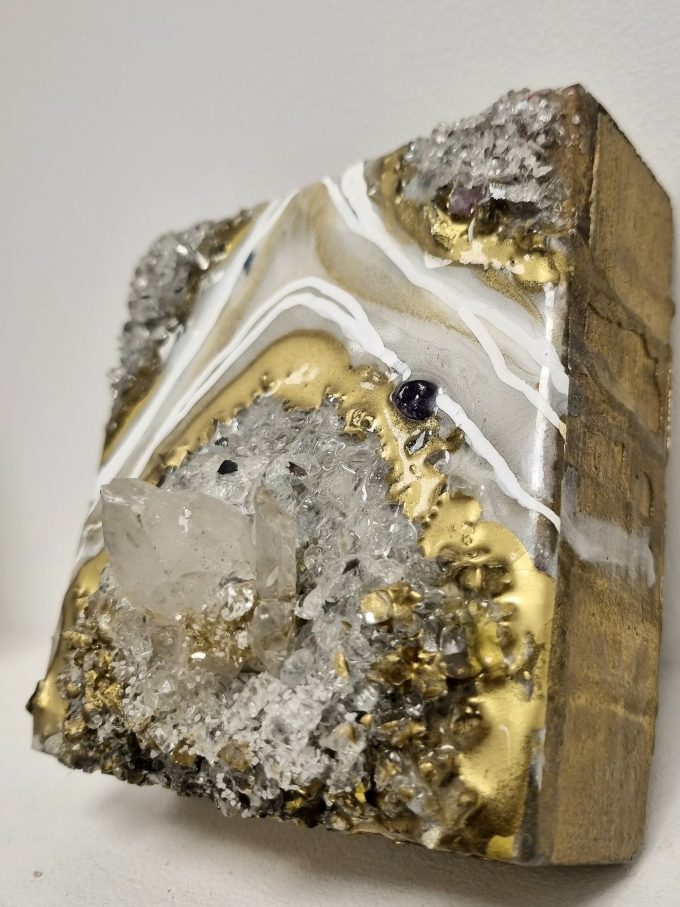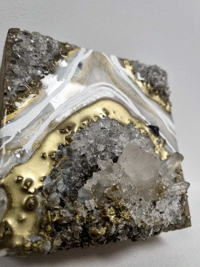 Un art vibrant, inspiré par les minéraux et leurs textures naturelles, dont les mouvements et variations se transforment en tableaux riches en matière. La beauté brute de l’agate et du quartz est métamorphosée en œuvres captivantes.